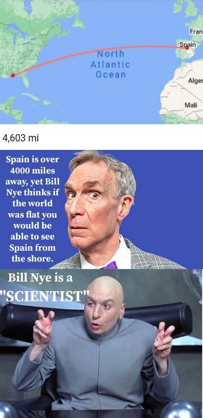 69) The New York City skyline is clearly visible from Harriman State Park’s Bear Mountain 60 miles away. If Earth were a ball 25,000 miles in circumference, viewing from Bear Mountain’s 1,283 foot summit, the Pythagorean Theorem determining distance to the horizon being 1.23 times the square root of the height in feet, the NYC skyline should be invisible behind 170 feet of curved Earth.