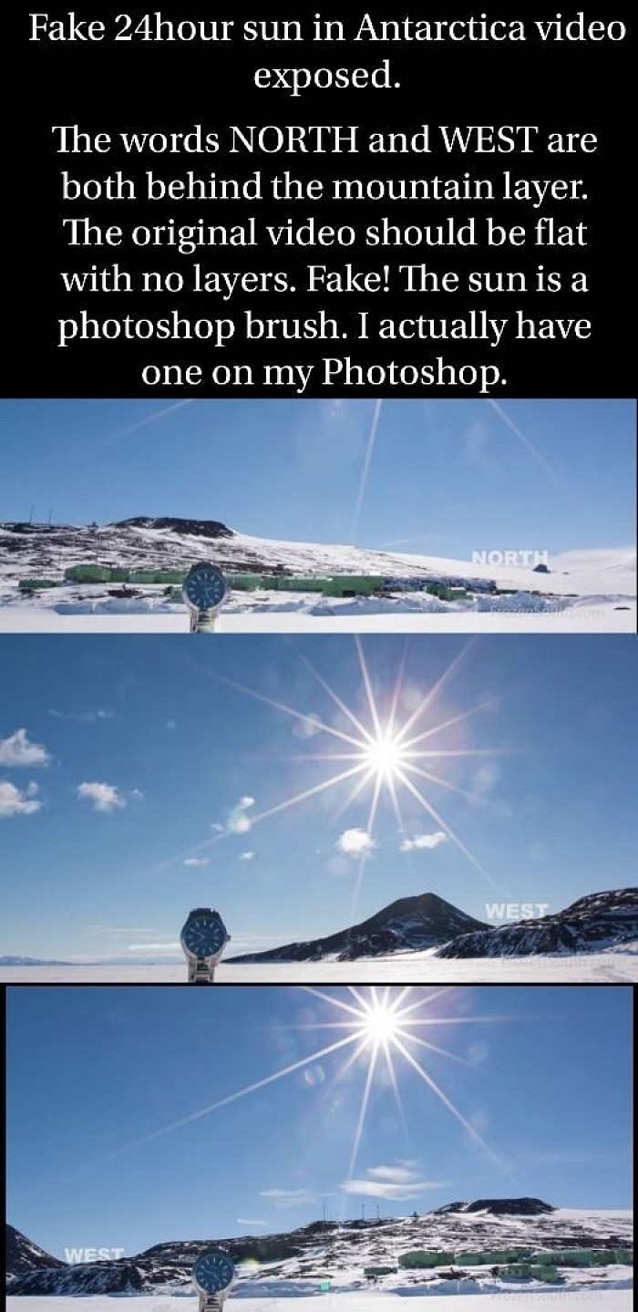 57) The establishment claims the Midnight Sun IS experienced in Antarctica but they conveniently do not have any uncut videos showing this, nor do they allow independent explorers to travel to Antarctica during the winter solstice to verify or refute these claims. Conversely, there are dozens of uncut videos publicly available showing the Arctic Midnight Sun and it has been verified beyond any shadow of a doubt.