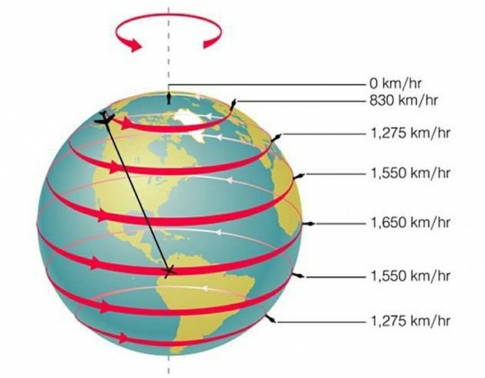 157) If “gravity” magically dragged the atmosphere along with the spinning ball Earth, that would mean the atmosphere near the equator would be spinning around at over 1000mph, the atmosphere over the mid-latitudes would be spinning around 500mph, and gradually slower down to the poles where the atmosphere would be unaffected at 0mph. In reality, however, the atmosphere at every point on Earth is equally unaffected by this alleged force, as it has never been measured or calculated and proven non-existent by the ability of airplanes to fly unabated in any direction without experiencing any such atmospheric changes.